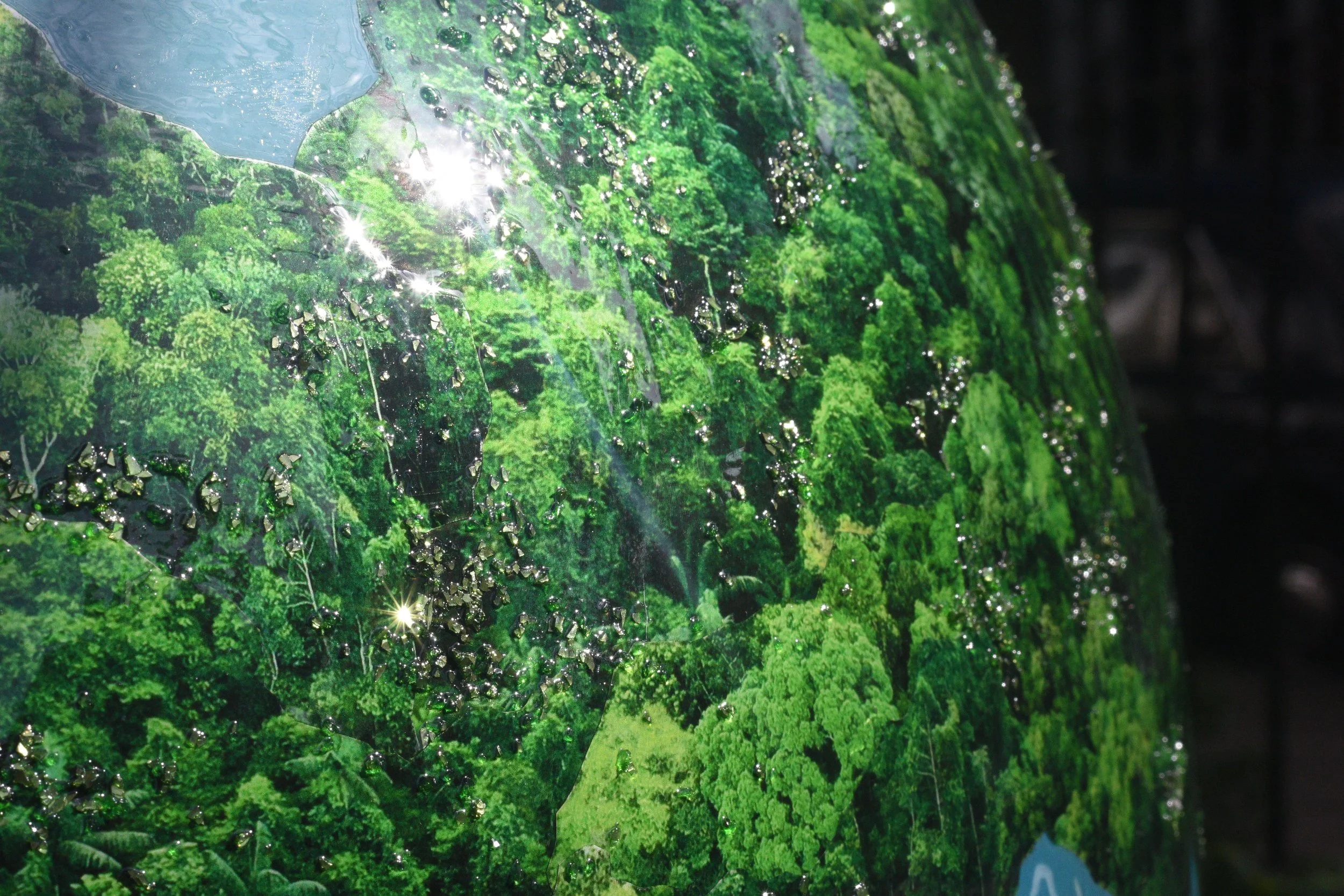 Nicola Green’s globe represents the deep-rooted connection between racial justice and climate justice - two of the most urgent and important issues of the twenty-first century. It is widely accepted that the Anthropocene epoch is inextricable from colonial expansion and slavery, that there is an intrinsic connection between the oppression of people and the exploitation and plunder of the world’s natural resources. Historically, colonialism exacerbated climate change, and enduring forms of imperialism mean that environmental racism remains pervasive today. Whilst climate change affects everyone all over the world, racially marginalised groups disproportionately bear the brunt of environmental degradation. It is projected that the Global South will incur 75-80% of the cost of climate change despite contributing the least carbon emissions. In many ways, the climate emergency is colonialism’s natural conclusion.