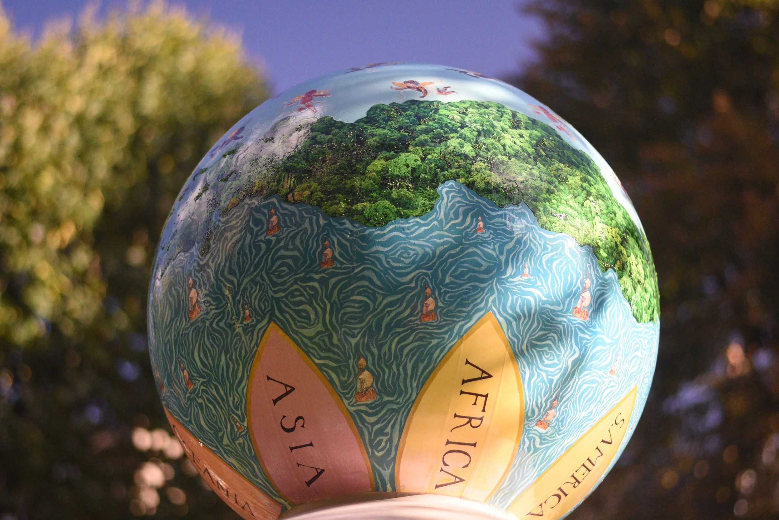 Nicola Green was delighted to participate in the The World Reimagined a ground-breaking, national art education project designed to transform how we understand the Transatlantic Trade in Enslaved Africans and its impact on all of us. Artists were commissioned to create artworks using a globe as their canvas, which were installed as sculpture trails across the country. The World in a Water Lily, Amazonica was part of the Camden and Westminster Trail, and was exhibited in the magnificent grounds of Westminster Abbey and later in the Queen Elizabeth Olympic Park and in Trafalgar Square.